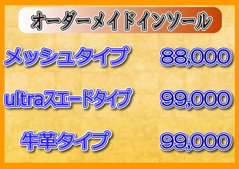 - セミオーダーインソール・オーダーメイドインソール料金表